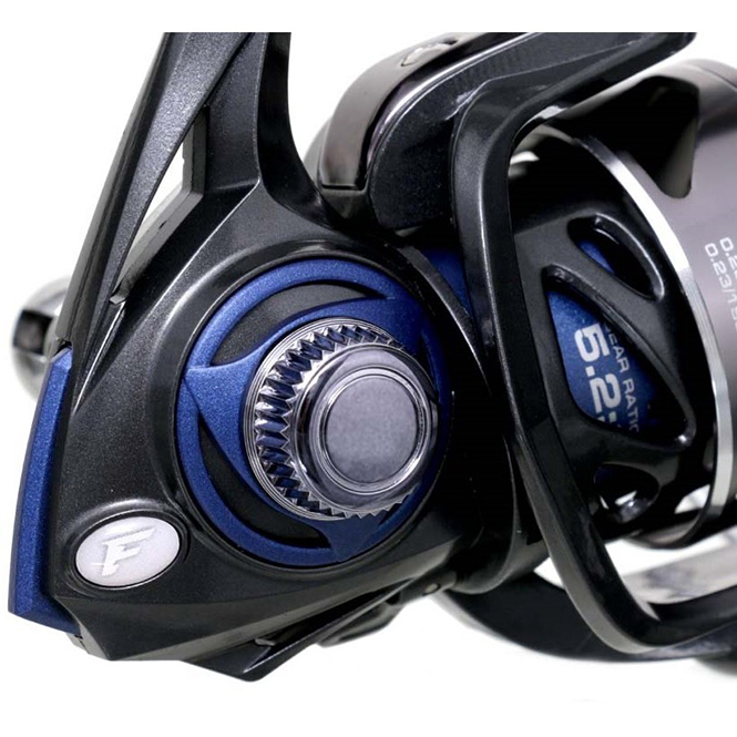 Точёная алюминиевая шпуля и ролик лесоукладывателя со сверхтвёрдым напылением предполагают свободное использование тонких шнуров и лесок, а усовершенствованный кулисный механизм обеспечивает их качественную укладку. Поверхность шпули «опоясана» полосой с мелкой насечкой, которая препятствует проворачиванию намотанной лески или шнура под большими нагрузками.