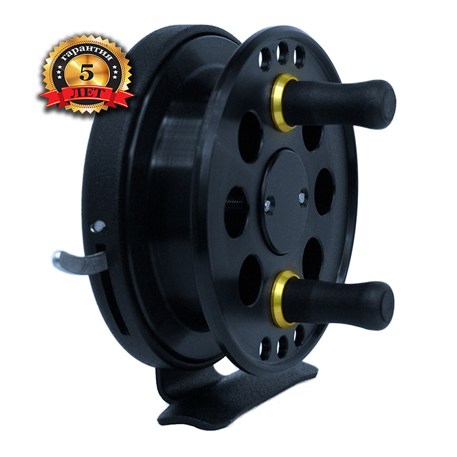 Шпуля выточена из авиационного сплава Д16Т, защищена от коррозии анодным оксидированием и вращается на двух высококачественных подшипниках из нержавеющей стали. Сплав Д16Т – лёгкий, прочный, но при этом не хрупкий, что практически исключает поломку шпули при падении катушки на лёд или камни. Особую прочность шпуле придаёт расположенный по ободу буртик, который очень удобен для тонкого торможения пальцем при вываживании рыбы. Катушка не боится попадания песка и снега, легко разбирается для чистки и смазки в полевых условиях. Ось шпули зафиксирована от проворачивания штифтом, что позволяет применять гайку с обычной правой резьбой как в правосторонней, так и в левосторонней моделях катушек.