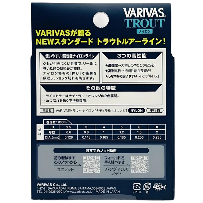 Леска Varivas Trout Nylon Natural 100м #1.5 0.205мм 6lb/2.72кг - Описание
