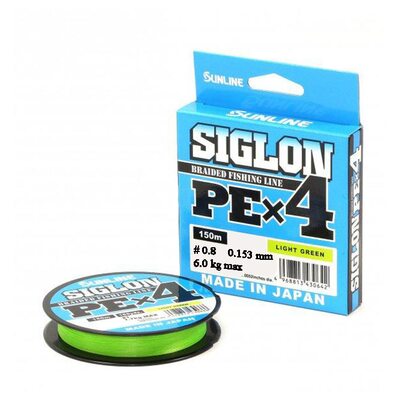 Шнур Sunlline Siglon PEx4 light green #0.8 (0.153мм) 6.0кг 150м – четырёхжильная плетёнка, произведённая из новейшего материала Excelent PE. Благодаря применению новейших технологий удалось уменьшить диаметр без потери прочности. Это привело к тому, что в линейке присутствуют плетёнки очень малого диаметра. Шнуры имеют плотное плетение и силиконовое покрытие, которое обеспечивает гладкость и жёсткость. Минимальная растяжимость плетёнки делает её максимально чувствительной и позволяет ощутить даже самую осторожную поклёвку. Широкий диапазон диаметров шнура позволит подобрать хороший вариант и для спиннинговой ловли, и для фидерной. Отличные технические характеристики и разумная цена превращают Sunline Siglon PEx4 150m в абсолютный хит продаж.
