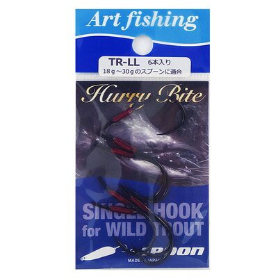Японские крючки Art Fishing Hurry Bite TR-LL (6шт.) Black для переоснащения различных лососёвых блёсен, позволяют снизить количество зацепов и сходов рыбы. Одна боевая единица представляет собой прочный кованый крючок из легированной стали с лопаткой, петелька из специального шнура Assist Line. Он хорошо держит нагрузку даже при вываживании крупной рыбы. Для защиты от механических повреждений и увеличения срока эксплуатации намотка всех крючков покрыта лаком. Ассисты ориентированы на ловлю лосося – сима, горбуша, ленок, кета, таймень, кижуч, кумжа, голец и т.д.