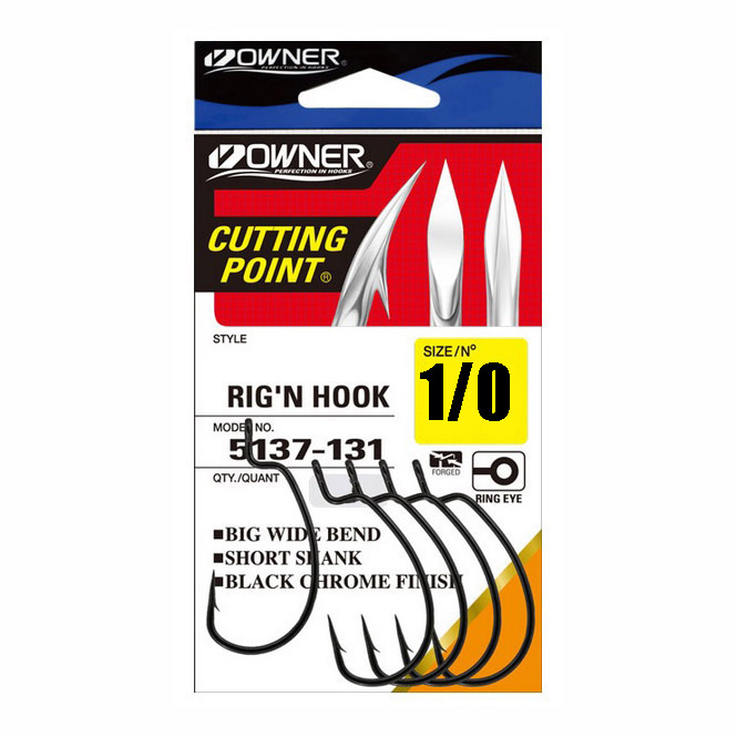 Предназначение оффсетных крючков Owner 5137 – оснащение объёмных силиконовых приманок с достаточно толстым телом. А всё благодаря ярко выраженной округлой конфигурации как самого изгиба, так и цевья, а также перпендикулярной ступеньке. Острейшая заточка жала Cutting Point, остриё специальной формы, стойкое антикоррозийное покрытие Black Chrome – вот, пожалуй, те характеристики, которые в полной мере отражают особенности строения данной модели оффсетника от Овнер.