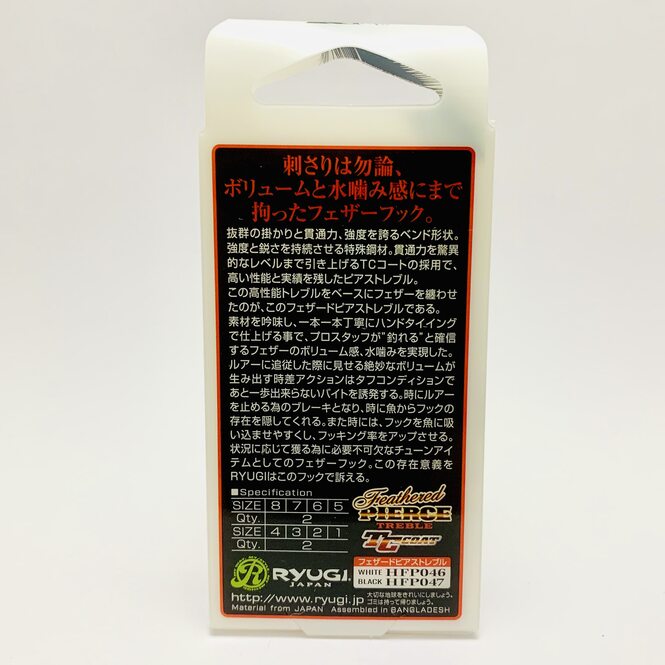 Крючки RYUGI HFP047 Feather Pierce Treble – специально разработанные тройники с мухой. Являют собой не просто инструмент для засекания и удержания рыбы, но и одновременно эффективную приманку. Специально разработанная инженерами Ryugi изогнутая форма крюка, наделяет их превосходной цепкостью, проникающей способностью и прочностью. Фирменная сталь Cyber Metal, потрясающе сохраняющая прочность и остроту, покрытие Tantrum Control, повышающее проникающую способность до невероятного уровня, делает этот тройник высокоэффективным и максимально надёжным в работе.