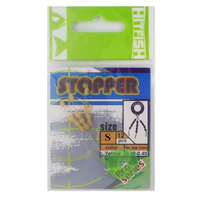 Силиконовый стопор HitFish Stopper Yellow #S (12 шт.) 0.22-0.28мм на леску. Данные стопоры производятся в двух цветах (жёлтый и чёрный), благодаря чему ими можно оснастить как тёмную, так и светлую леску, на которых они будут хорошо видны, или же наоборот – менее заметны, в зависимости от того, для чего происходит оснащение.