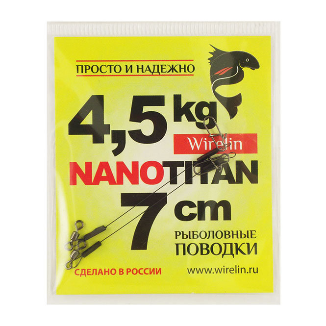 Титановый поводок, изготовленный из никель-титанового сплава. Не имеет памяти и не подвержен коррозии. Поводки «Нанотитан» изготавливаются из моножильной проволоки из сплава никеля и титана (нитинола). Поводки этой серии более мягкие, чем поводки серии «Титан Классик». Данное свойство особенно заметно, когда ловля ведётся в холодной воде.