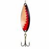 Выпускается эта колебалочка в трёх типоразмерах. 50 миллиметровик хоть и отличается небольшими габаритами, зато имеет вес в 10 грамм, что позволяет использовать блесну для ловли любых хищников на участках со стремительным течением или возле глубоководных ям. Версия в 70 мм и 14 гр позволяет ловить ею любого хищника – окуня, щуку, кумжу, радужную форель, гольца. Утяжелённая версия в 25 грамм и 70 мм – лучший вариант для ловли на глубине или сильном течении. Такая компактная и тяжёлая блесна, позволяющая достать хищника практически в любом, самом глубоком месте реки или озера, прекрасно держит струю и может использоваться в качестве приманки для отвесного блеснения.