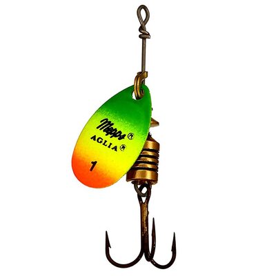 Блесна Mepps Aglia Fluo #1 Tiger 3.5г незаменима в мутной воде, а также при плохой погоде. Даже при воздействии ультрафиолетовых лучей приманка отчётливо видна. Зарядившись от лучей солнца или от других источников ультрафиолетового излучения, блесна продолжает долго светиться, даже когда остальные цвета полностью исчезают из видимости, что даёт преимущество в мутной воде или при плохой погоде. Но это не единственные достоинства, приманка имеет сверхпрочный крючок, который никогда не подведёт, поскольку не подвержен сгибанию.
