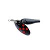 Что касается качества, то в данной приманке сомневаться не приходиться, всё выполнено безупречно. Установочная дуга и карабин на подшипнике обеспечивают стабильное вращение лепестка на любой скорости проводки, как в стоячей воде, так и на течении любой силы. Лепесток к тому же может иметь как рельеф в виде чешуи, так и быть глянцевым в комбинациях, где он и сердечник блесны выполнены в одном цвете.