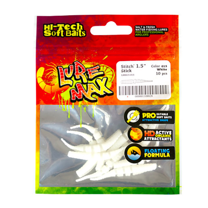 Червь LureMax Stitch Stick 2.5'' 68мм цвет 015 White (10шт.) - Описание