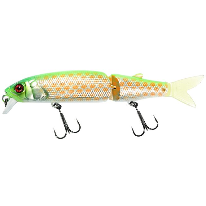 Воблер Jackall Tinny Magallon 88мм 7.2г lime pirarucu – компактная версия модели Magallon, которая остаётся одной из самых уловистых приманок по щуке на протяжении последних лет. Этот суспендер одинаково хорош как при твичинге разной интенсивности, так и при медленной проводке. Двухсоставное тело с небольшим хвостовым фрагментом и мягким хвостиком провоцирует на поклёвку даже очень пассивного хищника. Несмотря на свои небольшие размеры, воблер Jackall Tiny Magallon может заставить пойти в нападение и трофейные виды рыб. Приманка достаточно неплохо проявила себя при ловле щуки в самых нестандартных условиях, однако лучше всего работает при точечном облове конкретных мест, когда к хищнику нужен особый подход.