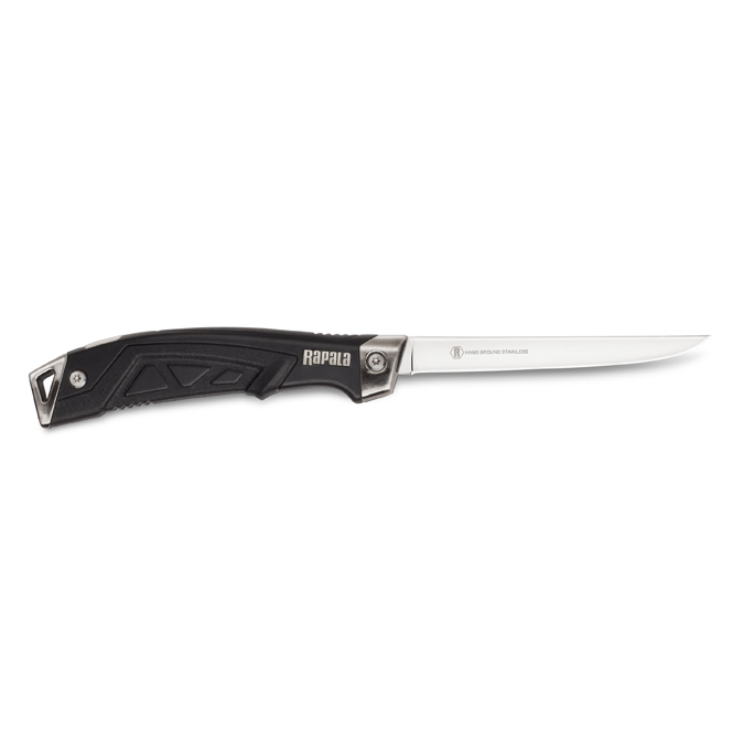 Нож Rapala филейный складной RCDFF5 – новинка 2019 года, финны и после нового года продолжают радовать только лучшим из лучшего. Гибкое лезвие изготовлено из нержавеющей японской стали, клинок отполирован, остро заточен, а конусная форма идеально подходит для разделки и удаления рёберных костей от филе рыбы.