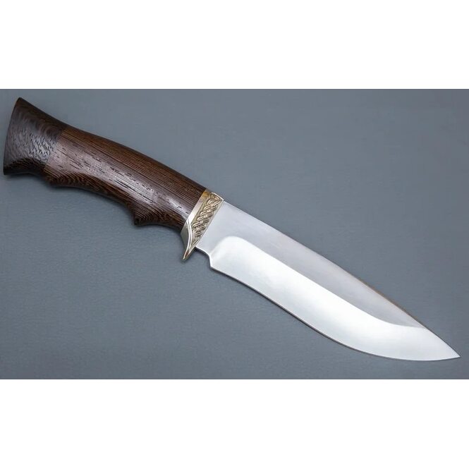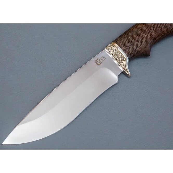 Нож Близнец сделанный вручную мастерами кузницы Сёмина из города Ворсма, Нижегородской области. При изготовлении клинка использовалась сталь 95х18, с твердостью которая составляет 57 - 60 HRC (Чем выше показатель, тем надежнее и долговечнее нож). При производстве рукоятки используется литье мельхиор, венге.