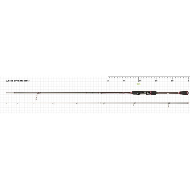 Тест на удилищах серии указан по общему весу приманки. Благодаря имеющемуся запасу прочности номинальный верхний предел при необходимости допустимо немного превышать, но при использовании рывковых воблеров его следует уменьшить примерно на 1/3. А при ловле джигом нижнюю границу рекомендованного весового диапазона стоит передвинуть на пару граммов вверх.