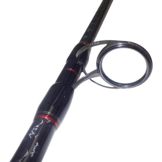Основательные титановые кольца Fuji, по-японски скрупулёзно и осмысленно расставленные по бланку, аккуратно подчёркивают брутальную сущность спиннинга.