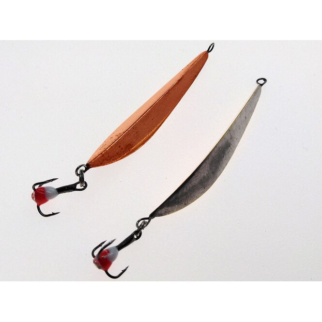 Зимняя блесна на окуня "Матвейчиков" - одна из самых старых и популярных спортивных блесен. Это идеальная блесна для ловли мелкого и среднего окуня на озерах и водохранилищах. Блесны 35мм хорошо подойдут для ловли на глубинах до 3м. 40мм можно использовать до глубины 4м, а 45мм - до глубины 5-6м. Желательно применение тонких лесок от 0.1мм до 0.14мм. Блесна имеет очень выверенный выгиб коронки (чего лишена классическая Маропедка) и за счет него происходит вибрация и отклонение на дерге. На сбросе блесна Матвейчикова играет с уходом в сторону и с колебаниями возвращается в исходную точку. Позволяет ловить практически всеми видами проводок, очень редко перехлестывается и прекрасно подойдет для новичков.