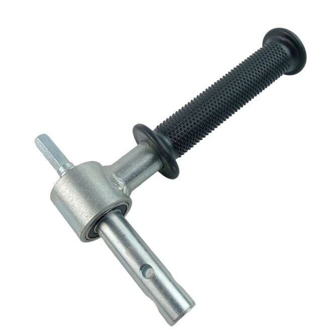 Адаптер имеет удобную резиновую ручку, с помощью которой всю конструкцию легко удерживать при сверлении льда. Она же не позволяет потерять шнек при выскальзывании трехгранника из патрона шуруповерта.