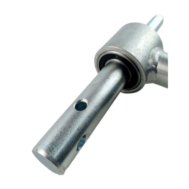 За счет подшипников сверление лунок становится еще легче. Изделие представляет собой переходник, который с одной стороны крепится к шнеку ледобура, а с другой имеет трехгранник для крепления в патрон шуруповерта.