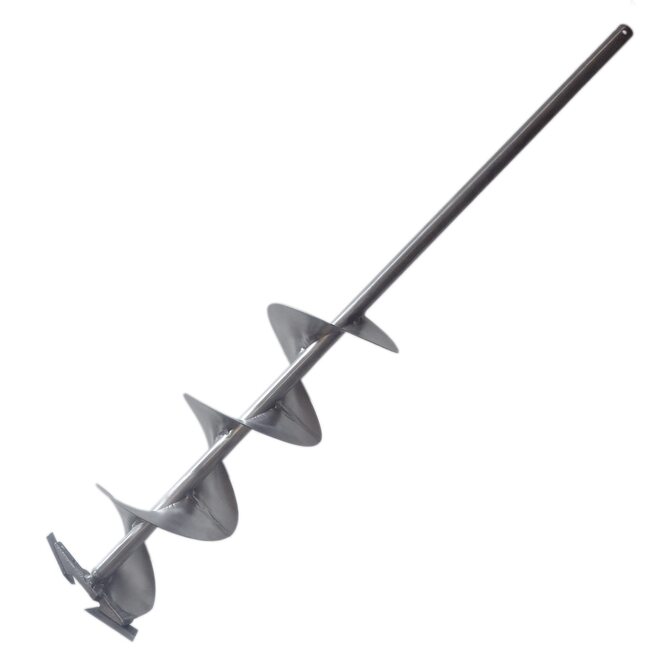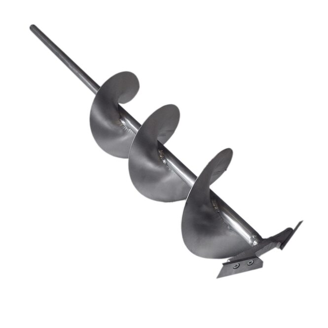 Шнек титановый Суоми R 2003 имеет цельную конструкцию с тремя витками на трубе длиной 115см и диаметром бурения - 200мм. Направление вращения по часовой стрелке, R - правое. В комплекте идут установленные фирменные ножи, закрытые защитным футляром. Под крепление адаптера предусмотрены два отверстия 6 и 8 мм соответственно. Посадочный диаметр адаптера - 18мм.