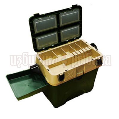 Ящик A-Elita B-Box зимний – популярный рыболовный ящик, который претерпел изменения и улучшения, основанные на предложениях рыболовов-любителей. Этот всесезонный и оптимальный по пропорциям и размеру ящик теперь сделан из более прочного и морозоустойчивого пластика, чем тот, который использовался при создании предыдущих моделей. Конфигурация дна в данном ящике изменена: специальные выступы по углам делают его более устойчивым на покрытом снегом льду. Новая модель имеет надёжный шарнир крышки, сбалансированный таким образом, что при её открывании ящик не переворачивается. При желании общий полезный объём обновлённого изделия можно легко увеличить, достаточно только пристегнуть к специально сделанным защёлкам съёмный боковой карман из пластика.
